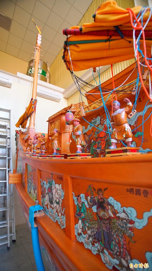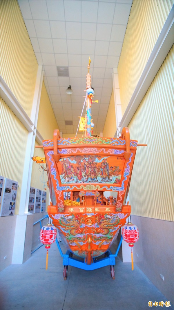 東港東隆宮典藏用王船今天在典藏館亮相。(記者陳彥廷攝)